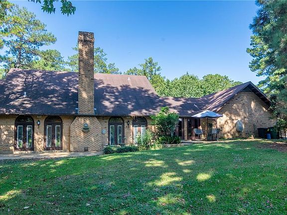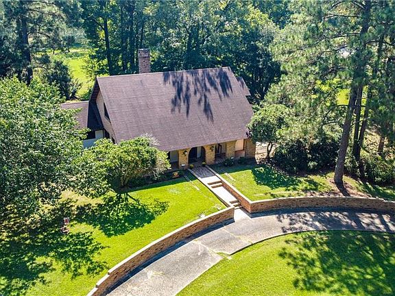 Elegant home in the beautiful Lake Hills Subdivision. This two-story home is a must-see inside and out. Four sets of french doors off the den lead to a large patio and several sitting areas under shaded trees on over 2 acres. There is even a "playhouse" outside that can also be used for storage. A circle drive makes visitor parking convenient. Vaulted ceilings in the upstairs suite make this a one-of-a-kind home. The main bedroom could be up or downstairs. Updated floors throughout. Lots of storage inside and out.