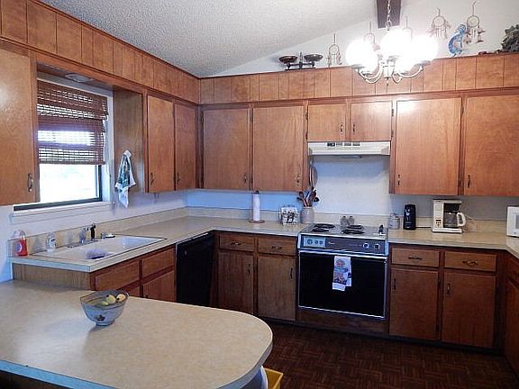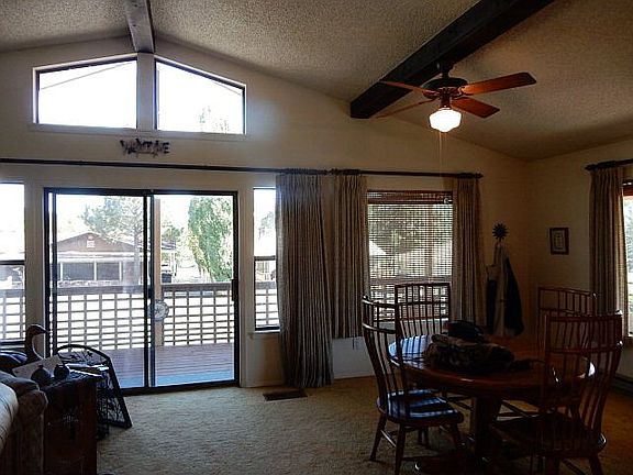 THIS CREE MEADOWS CLASSIC IS SITUATED ON A RE-PLAT OF SEVERAL LOTS THAT BOASTS A VEGETABLE GARDEN, 5 MATURE APPLE TREES & VIEWS OF THE 1ST & 3RD FAIRWAYS. IT'S SLIGHT ELEVATION AND FRESHLY PAINTED WRAPPED DECKS ALLOWS FOR VIEWS ALL AROUND. LARGE GREAT ROOM WITH BEAMED CEILINGS, WOOD BURNING FIREPLACE & LOTS OF NATURAL LIGHT. METAL ROOF & EXTRA DEEP CAR PORT AT BACK PLUS TONS OF PAVED PARKING AREA FOR GUESTS & RV'S. SPACIOUS STORAGE AVAILABLE UNDER THE DECK. HAS ONLY HAD 2 OWNERS SINCE IT WAS BUILT. DISHWASHER & WASHING MACHINES NEW IN 2014. SOME STRATEGIC UPDATING WOULD REALLY MAKE THIS HOME SHINE AND TREMENDOUS POTENTIAL IS THERE. VERY CLEAN AND IS BEING SOLD FULLY FURNISHED!