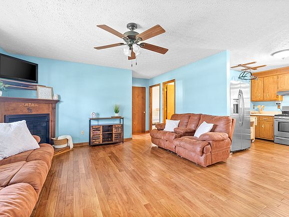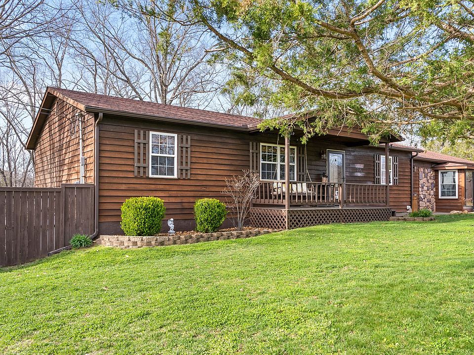 Convenience & privacy defines this charming property, with privacy fences & fully fenced in backyard. Swim in the 30 ft above ground pool or lounge out on the deck. A new liner-installed in 2019. Pool has a sand filter with new sand (2023) and pool is licensed through Family Leisure. Relax by the firepit or grill in the outdoor grill area. Lots of storage between the garage (storage racks and work bench convey), carport/shed, outdoor pool storage locker, &10x16 outdoor shed. Chicken coop coveys. Inside is spacious with hardwood floor throughout the living, kitchen, and dining area. Sit by the gas fireplace insert or enjoy a snack at the moveable kitchen island. Admire the rustically designed dining area, beautifully planked wood ceiling, double ceiling fans, beam, & many windows. Enjoy a hobby room, den, & large storage closet. All bedrooms-carpet & ceiling fans ('20). Fresh paint except for back bedroom & hobby room. '23 water heater. New floor from laundry room steps to den carpet.