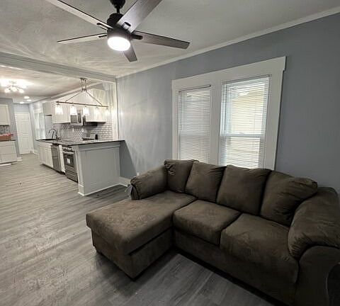 Modern couchLaundry roomCable readyBalcony deck patioLaundry room in buildingNew windows with blindsStainless steel appliances