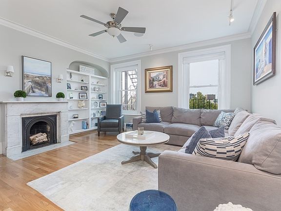 Enjoy incredible waterfront views in this extensively renovated 3-bed, 3-bath penthouse that seamlessly blends modern amenities with traditional Back Bay charm. Large windows and brand new skylights flood this floor-through duplex with natural light. Beautiful custom renovations, as featured in Boston Design Guide Magazine, welcome you into the main living area, featuring ~10ft high ceilings, a brand new chef's kitchen and entertainment bar with custom cabinetry, and top of the line Sub-Zero/Wolf appliances. The open living and dining room are framed with tranquil water views, built-in surround sound speakers, a full bathroom, and a spacious bedroom or home office with a fireplace and commanding city views. Upstairs you will find two large bedrooms, including an en-suite main bedroom with a walk-in closet, unobstructed Charles River views, and custom built-ins. Enjoy a 360-degree panorama of the Charles River and the city from a brand new private roof deck. One parking space included.