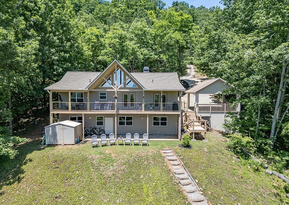 BACK ON MARKET AT BUYER'S FAULT! SELLER AVAILABLE FOR A QUICK CLOSING! **Charming Mountain Retreat on 3.5 Acres at the End of a Cul-de-Sac** Nestled in serene seclusion surrounded by pristine USFS land, this beautiful mountain home offers the perfect blend of tranquility and adventure. Situated on lush greenery close to downtown Blairsville, this three-bedroom, three-bathroom sanctuary is an idyllic escape from the hustle and bustle of everyday life. As you step inside, you'll be greeted by the warm, inviting atmosphere of the open living space, featuring stunning tongue and groove ceilings that extend through the upstairs bedrooms. The primary suite is a true retreat, complete with an en suite bathroom and a convenient laundry room for ultimate comfort and convenience. Downstairs, the home continues to impress with a spacious family room perfect for gatherings. Enjoy cozy nights by the wood-burning fireplace, or challenge friends and family to a game of pool. This level also includes a generous bedroom and a full bathroom, offering privacy and comfort for guests. With expansive outdoor spaces and unparalleled access to nature, this property is a haven for outdoor enthusiasts. Whether you're hiking the nearby trails, enjoying the vibrant fall foliage, or simply savoring the peace and quiet of your own private retreat, this mountain home is a rare gem. New roof, new paint, new rear deck stairs, new deck & stairs stain. Don't miss the opportunity to make this exceptional property your own.