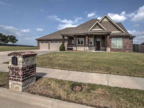 Beautiful 2014 brick and stone home with 5 bedrooms and 3 full baths & Office. Custom cabinets in the large kitchen with lots of windows overlooking the back patio area . Located near the Adams Golf course. Pool and clubroom available for this neighborhood 3 car garage