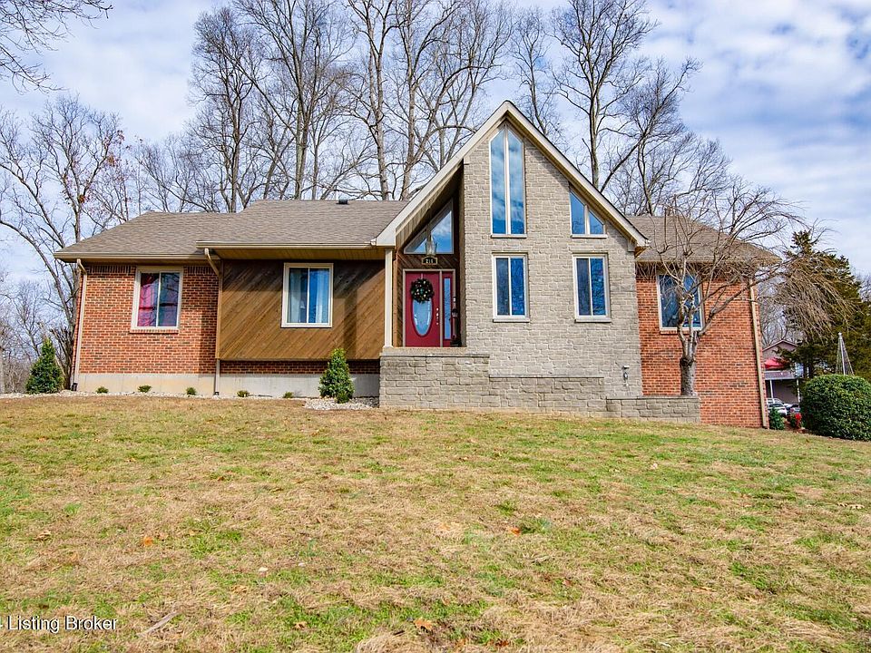Situated on a double lot in the gated community of Doe Valley, located inBrandenburg, KY, just 30 minutes from Louisville, 25 minutes from Fort Knox, and 40 minutes to Elizabethtown. Doe Valley community offers a campground, golf course, two beaches, Swim and Tennis Club and Restaurant with a recently renovated swimming pool, and a full service marina with bait, gas, and snacks for your lake days! This meticulously maintained home offers 3 bedrooms, 2 full bathrooms and sits on a walkout basement. Upon entering, you'll be wowed by the vaulted ceilings and the abundance of natural light that pours in from all of the windows. Off of the living room, you'll find a stunning eat in kitchen that offers ample cabinet space, granite counter tops, and beautiful hardwood floors that flow into the adjoining formal dining room. The primary suite features a stunning private primary bath with a tiled walk in shower and double vanity. In the basement, you'll find a family room, bonus room, large storage area with your laundry (don't worry, there's a laundry chute from the main level!), as well as a 2 car attached garage. We haven't even gotten to thebest part! Seller owns the 0.25 lakefront lot across the street and is selling for an additional fee. This lot already has a road with a guardrail down to the lake and dock area along with steps leading down the hill right to the dock. The lower level offers a flat area that is perfect for entertaining! Below this area, you'll find a beautiful boat house already equipped with electricity, security cameras, lights, television and storage area with a refrigerator. There is an additional landing with steps that leads down to the lake which has a large swimming platform, docking slip for a pontoon, and electric outlet for charging batteries. Don't wait, this rare find won't last long!