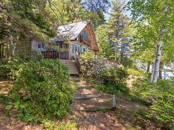 Imagine listening to birds chirping while swaying in a hammock on your New Hampshire Island oasis on the shores of Lake Winnipesaukee! Just 2 hours north of Boston, Big Barndoor Island awaits. As seen in the film, "On Golden Pond," this sought-after island is situated between Wolfeboro & Alton. The property consists of a 4-bedroom home & a 3 story bunkhouse. Located in Alton on 2.17 acres, this Adirondack style property is on a double lot & has 200 feet of Lake Winnipesaukee frontage which can be best viewed on the sunny oversized deck. An oversized U-Shaped Dock accommodates up to four boats, a stone staircase leads a swimming area. 1st floor living has 2 bedrooms, a washer & dryer, & full bath. Main living area has tall ceilings & offers splendid lake views. The fireplace offers plenty of warmth. A screened porch is off the living room. A spiral staircase leads upstairs to a 1/2 bath, additional living space & two additional bedrooms with skylights & lake views. A catwalk leads to a detached bunkhouse. The 1st floor of the bunkhouse contains a bedroom, the 2nd floor has three bunkbeds that sleep nine, and 3rd floor has a family room with captivating views of the lake. Wolfeboro, "The Oldest Summer Resort in America," is easily accessible via 5-minute boat ride & offers the convenience of shopping, dining, summer concerts and more. Sold fully furnished. The 2nd lot can be sold, or kept for additional privacy. Call today to arrange a guided tour!
