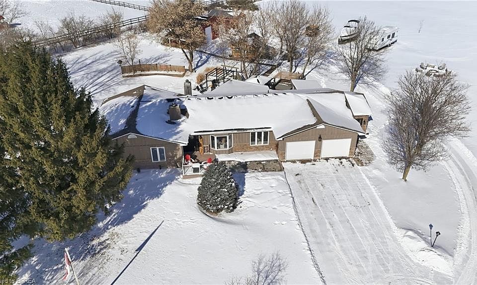 Welcome to an exceptional, fully updated country estate offering over 3,400 sq ft of refined living space, perfectly positioned on more than 3 private acres. Designed for both elevated entertaining and everyday comfort, this 4-bedroom, 3.5-bathroom bungalow delivers space, privacy, and high-end lifestyle living. Begin your mornings on the front porch, coffee in hand, surrounded by nature and the tranquil sounds of the fountain in your own private pond. Inside, the home has been fully updated throughout, featuring expansive, light-filled living areas and a seamless layout ideal for hosting. The massive finished basement sets the stage for unforgettable game nights, movie evenings, or gatherings of any size. Outdoors, the property truly shines. The backyard retreat is complete with a heated pool for extended seasonal enjoyment, a hot tub for evening relaxation, and a covered outdoor bar and cooking area—perfect for elevated entertaining. A large outdoor sunroom further extends your living space, offering a sophisticated setting to enjoy the outdoors in comfort. Car collectors, hobbyists, and outdoor enthusiasts will appreciate the attached double-car garage, a heated detached shop with electricity, two additional outbuildings, and ample parking for recreational vehicles, trailers, and all your toys. Private, polished, and move-in ready, this remarkable bungalow offers the rare combination of luxury, land, and lifestyle—an inviting retreat where every detail supports entertaining, relaxation, and refined country living. New Furnace and AC 2023, Water Treatment 2024, Shop Heater 2025.