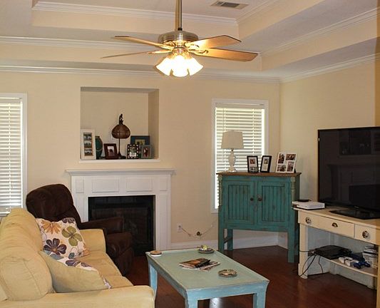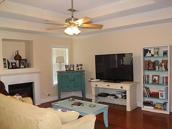 Brick home with open & split floor plan. Family room with fireplace, double trey ceiling, wood floor. Dining room has double trey ceiling, wood floor. Bedrooms have 6 month old carpet & high ceilings. Master has cathedral ceiling, 2 walk-in closets. MBath has walk-in shower & jetted tub. Appliances remain & are less than a year old. Tile floors in kitchen, baths, Laundry & halls. Original patio has been enlarged. Wood fenced-in back yard with chain-link fence & gate across middle of back yard for pets. Some rooms recently painted. Listing Realtor is related to Owner.
