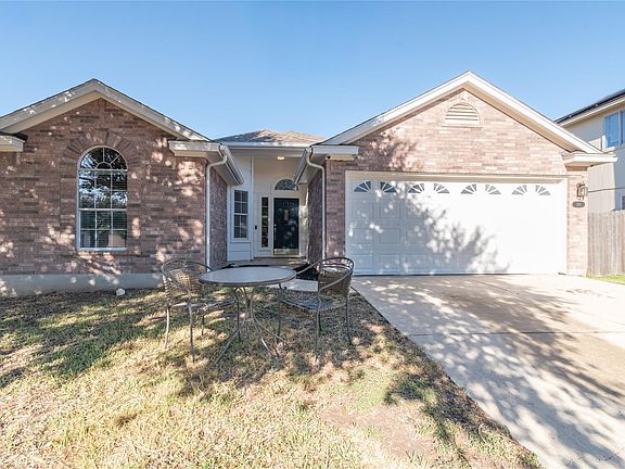 Great opportunity on this home that is move-in ready with many modern updates and upgrades. The 1,602 sq ft open floor plan offers 3 bedrooms, 2 full baths, fireplace, covered back porch and 2 car garage. New exterior paint, quartz countertops in the kitchen and bathrooms and new sinks. This home is carpet free with 100% wood-looking porcelain tile, fresh interior paint, tall format base boards, and LED ceiling lighting installed within last 2 years. The primary bedroom is large with lots of natural light. Recently installed privacy would fence with metal pipes on the right side of the house. Shaded backyard is a plus. ReoLink security cameras and doorbell all wired to on-site recording box convey. Location is a plus with quick access to IH-35, shopping, schools, parks, and neighborhood pool all close by.