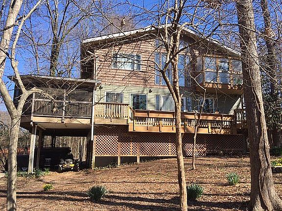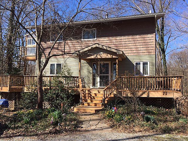 Sledd Creek - A gracious woodland home is nestled in 1.64 acres of natural landscaping, deep water for winter boating, w/seasonal water views, only minutes to I-24. Features 3BR, 2 full & 2 half baths, wealth of natural light, beautiful built-ins & storage throughout the home. His & her desk area w/bookcases & display, decorative ceramic tile work, log burning fireplace w/2 story stone chimney,2nd kitchen in full basement, whole house generator, circle driveway, screened composite deck, wrap around porches, heated 2 car detached garage w/full bath & lean to for RV/camper, 2 car carport, 2 storage buildings w/electricity, U shaped private floating covered dock, storage area & SeaDoo dock.