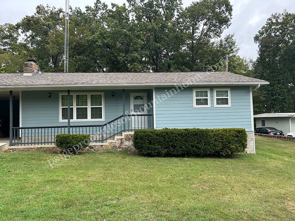 This 2 bed/2 bath home, located in Bull Shoals, is a fishermans dream! Just down the road from Brown's Beach access on Bull Shoals Lake to enjoy all year round! Peaceful and quite country setting, minutes to town life in Bull Shoals. Beautiful kitchen with dark wood cabinets, comes with a stove, refrigerator and washer/dryer hook ups. 1 car attached car port. Lovely front and back yard space. In the back yard there is a porch and a small metal shed for storage. The large blue shed is not for tenant use. Lawn care is provided. No pets.