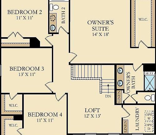 The Evans offers 4 bedrooms and 2.5 baths. This great open floor plan offers beautiful laminate flooring throughout the first floor living space, a formal living room upon entry followed by the formal dining room leading into large open family room open to a breakfast nook and gourmet kitchen. With quartz countertops, stainless steel appliance, gas range Extra large pantry and half bath. The 4 bedrooms are upstairs, with a spacious loft area with adjacent laundry room. The Owners suite is very large with a walk in closet and the owners bath.