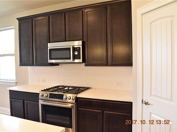 HOA maintained front yard. 10 ft ceilings and 8 ft doors. The kitchen includes a standard 8 kitchen Island and custom Merillat soft close cabinets that oversees formal dining room and family room. All 4 sides of home are stone and stucco. Minutes away from the Round Rock Outlets, 1890 Ranch Shopping Center. Close to TSU and ACC campuses. Exceptional medical care is also nearby with Scott & White Hospital and Seton Medical Center Williamson located right next to Teravista.