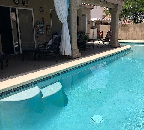 Beautiful 4 bedroom Henderson home with 3 car garage and private pool. Kitchen features all stainless steel appliances, custom cabinets, granite counter-tops, breakfast bar, pantry, & tile flooring. Spacious front living room w/ vaulted ceilings. Family room separate w/ fireplace & ceiling fan. Large master bedroom w/ walk in closet & ceiling fan. Dual masters. Master bath w/ double sinks & separate tub/shower. Tile & wood laminate flooring.
