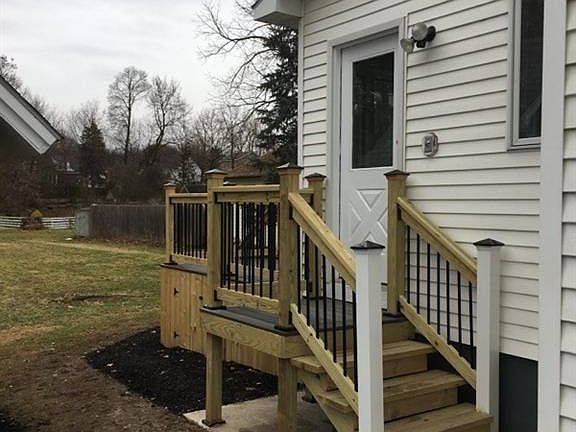 REDUCED $15,000! Move right in to this reconditioned home. NEW deluxe white kitchen with butcher block countertop, all new appliances, rain shower dressing room 1st floor bathroom. Family room with skylights walks right out to newer deck and large 290 ft yard. 1st floor bedroom with french doors, large updated bath on 2nd floor. All reconditioned floors, new carpet, and paint throughout. Updated gas forced air furnace with hookup for future a/c. Updated vinyl tilt in windows, new updated entry cable with new electric circuit breakers and so much more.