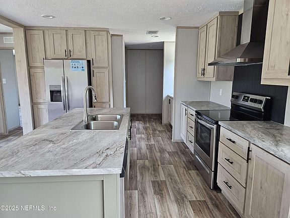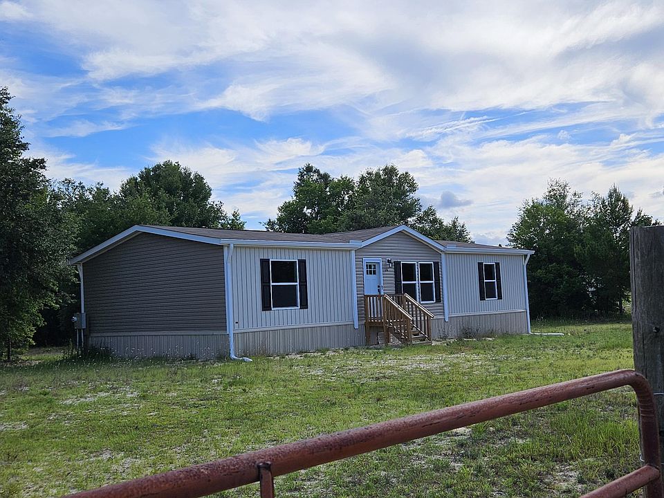 Quiet, 1.02 acre, NEW, 3/2 w/ home warranty located at the top of the hill above Welaka, FL. This brand new, never lived-in, manufactured home is 3/4 fenced, 1 block off pavement, zoned AG1, and ready to move in immediately following your closing! Open floor plan offers a large kitchen island and all NEW appliances, feature-wall in the living room, dining room with glass sliding doors leading to the oversized, private backyard and smart sensor air conditioner and heating system. This home is pre-wired and ready to accept solar as well. Master suite includes a large walk-in closet, large shower, double vanity, and second closet. 2 more bedrooms each include walk-in closets. Second bathroom offers a bathtub. Laundry area includes washer/dryer hookups and extra, flex space to add a pantryor second freezer. This 1+acre property offers plenty of space for your boat, trailer, swimming pool and animals. Just off 308B between Pomona Park and beautiful Welaka. Only 7 minutes to the closest public boat ramp and the beautiful St. John's River. Please note: This is a brand new home, Google and Zillow are still showing this as vacant land