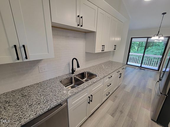 This 2 bed 1.5 bath Cary townhouse offers the perfect blend of comfort, convenience, & style. As you step inside, you're greeted by a beautiful kitchen, boasting sleek granite countertops, modern SS appliances, & ample cabinet space for all your culinary adventures. The kitchen seamlessly flows into the bright living area, perfect for entertaining guests or simply unwinding after a long day. New LVP flooring spans throughout the main level, adding both durability & elegance. Downstairs, you'll find two generously sized bedrooms, each offering plenty of natural light & closet space. Fresh paint throughout the interior provides a welcoming ambiance & serves as a blank canvas for your personal style & décor preferences. But the beauty doesn't stop indoors. A private patio adds the serenity of nature with a beautiful trail that offers the perfect escape. Located in a highly sought-after area of Cary, this townhouse offers easy access to shopping, dining, entertainment, & major commuter routes. Don't miss your chance to call this gem your own.