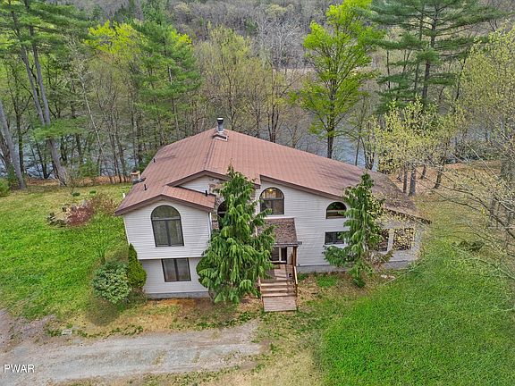 Riverside Escape with Private Beach - Welcome to your private Delaware River sanctuary at 216 Cortese Road--a rare, spacious 3-bedroom, 3-bath retreat designed for comfort, entertaining, and year-round enjoyment of one of the region's most sought-after riverfront locations. The house is filled with beautiful natural light!Begin your journey through a striking custom stainless steel gate adorned with local wildlife motifs, setting the tone for the serene and artistic spirit of this unique property. Privately tucked away, the home sits directly on the Delaware River with a walking path to your very own private river beach, perfect for kayaking, swimming, fishing, or simply soaking in the peaceful sounds of flowing water.Inside, the main living room boasts soaring ceilings and a dramatic wall of glass, framing stunning river views and a stately stone fireplace. The open-concept layout flows effortlessly into a well-equipped kitchen and a dining room with double doors, ideal for hosting festive gatherings and holiday feasts. Step outside to a 55-foot-wide deck, stretching the full length of the home and offering ample space for alfresco dining, entertaining, and enjoying your favorite drinks with a spectacular view.The main floor includes two bedrooms and a full bath, while the private upstairs primary suite features a balcony, walk-in closet, and a luxurious ensuite bath. The lower level is perfect for multi-generational living or guest accommodations, with a new second kitchen, remodeled full bath, two additional bonus rooms, and a spacious family/dining area with sliders that open to the outdoors--fire pit and s'mores included.Additional features include a detached 1-car garage, a storage shed for tools and gear, and a raised garden bed for seasonal planting.Just minutes from Narrowsburg and surrounded by nature, this riverfront gem offers the ultimate blend of seclusion, space, style and low taxes.