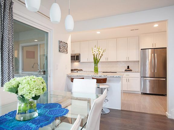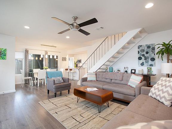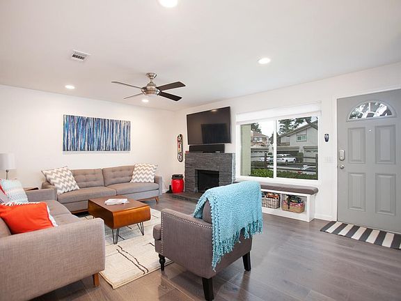 Stunning end unit townhome with full remodel throughout! Extended kitchen, all new cabinetry, granite, tile backsplash, s/s appls & wine fridge. 3bed/2.5 bath with extra 5x8 room for storage/pantry/office + full-size laundry room! Gorgeous upgrades including wood floors throughout, remodeled bathrooms, new windows, new furnace, LED lights & more! Large private patio with pass thru window, outdoor sink & bar area. 2 car garage, community pool, tennis, parks & highly rated schools. Convenient to Encinitas hot spots!