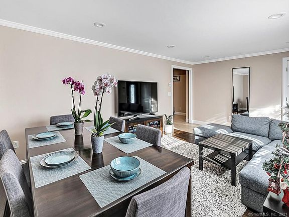 Perfect home to get for New Year! This recently remodeled energy-efficient home welcomes you with a covered front door porch that opens to the sun-filled living/dining room with a large window. Remodeled kitchen features center island, shaker-style cabinets, granite countertops, stainless steel appliances and a separate side entrance to the deck. Spacious bathrooms and bedrooms with larger windows provide plenty of natural light. Finished lower level adds several living spaces: family room, playroom, gym and full bathroom. Attached 1-car garage. Bluestone steps lead to a spacious green lawn. Enjoy privacy in the backyard situated on a flat level yard with a large deck. This property has nice landscaping with mature trees and partially fenced yard. This home is located within minutes to shopping, transportation (bus lines and train to NYC), highways, schools. 2-minute to the park with a modern children's playground. 4yo roof, siding, spray foam insulation in the attic, thermal pane windows, refinished/new floors, mechanicals.