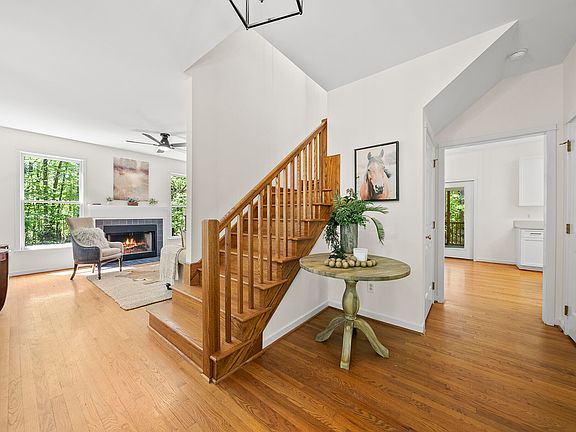 Are you ready to leave the world behind? Come home to your own farmhouse on 10 acres just outside Carrboro & zoned for CHCCS. This home features spacious rooms, plenty of storage, & quality updates. The 1st floor has 9-ft ceilings, a large family room w/fireplace & built-ins, an eat-in kitchen w/island & walk-in pantry, & a covered front porch AND a back screened porch. The dining room has French doors & could be used for a home office. New interior paint, carpet, quartz countertops, & refaced cabinets. Other updates include new light fixtures & toilets (2025), roof (2024), 2 HVAC units (2023), & exterior paint (2021). For a touch of whimsy, how about a laundry chute, 3rd floor reading nook, & a secret drawer to be revealed only to the buyer of this special property! The land features a mix of specimen trees & natural woods. Come home to a simpler way of life!