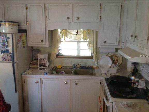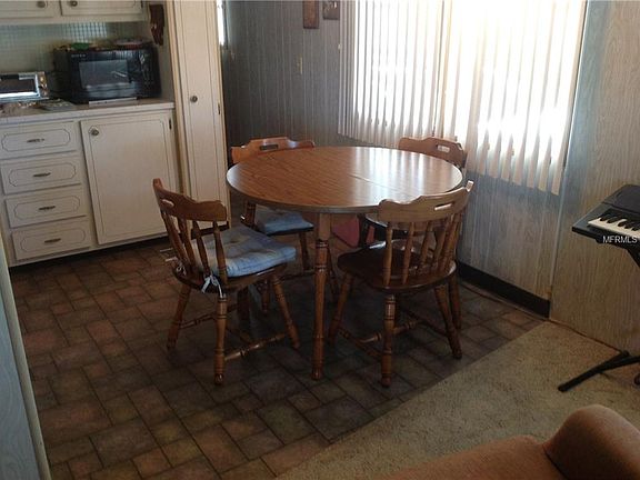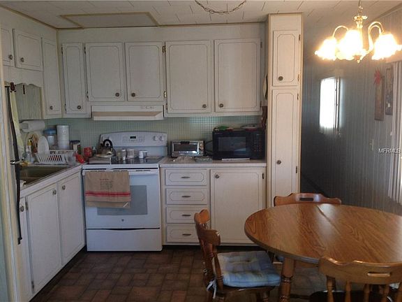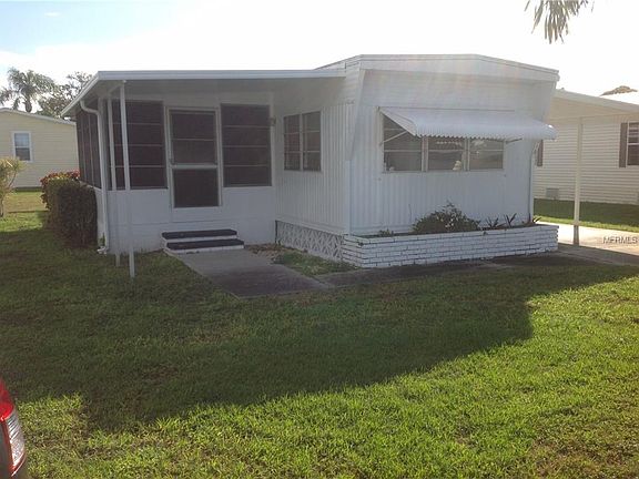NEW PRICE: $54,900. Make this your get away from the cold and snow. Comfortable two bedrooms, one and a half bath located on a corner lot. Central heat and a/c, eat-in kitchen, single wide with an add-on vinyl enclosed lanai. This property is located in an active 55+ community which provides a clubhouse, shuffleboard, pool and a manager. Low maintenance fees are $150/month include water, sewer, trash, and lawn cutting. You are only minutes away from shopping, restaurants, churches and the beaches. Lots in this community sell for $42,000. This one comes with the LOT - NO LOT RENT.