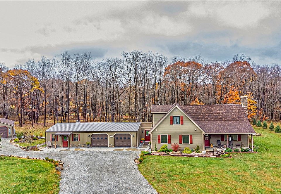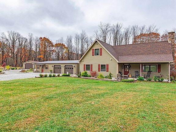 Searching for a tranquil piece of the Laurel Highlands? This 2018 built home, situated on a double lot in the enchanting Fern Mountain Highlands, offers all you have been wanting. Admire the open living room and stunning wood burning fireplace. Appreciate the beautiful solid woodwork of this timber frame, story and a half. Luxury vinyl planking and ceramic tile can be found throughout. The kitchen features granite countertops, white cabinetry, stainless appliances and suspended range hood. The ideal first floor master suite is complimented with heated bathroom floors and laundry area. The upper level boasts a second full bathroom and two spacious bedrooms. The two car attached garage allows space for cars and storage, while the third bay is the ideal game room or home gym. Step onto the deck and find an eclectic retreat featuring a splash pool, fire pit, putting green and coy pond. Store all of your additional equipment the landscaped storage shed. Don't miss this opportunity!