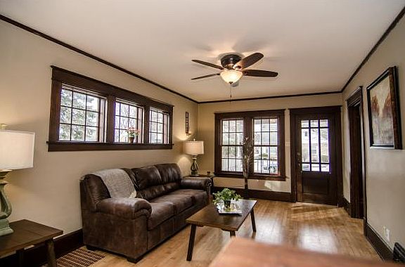 Very nice updated home with covered front porch. Beautiful woodwork preserved and charm through out house. Enhanced with modern flair. Featuring 4 spacious bedrooms all with walk-in closets. Kitchen has abundance of rich looking cabinets, pantry and includes appliance package. Formal dining room with built-ins/seat opens to large living room. Insulated 2.5 stall garage. Vinyl exterior.
