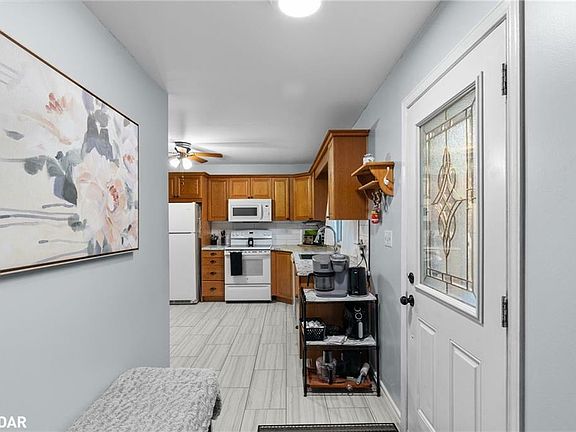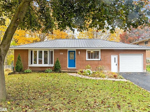 Presenting 216 Dominion Drive, located in Stayner, ON, which is a quaint town ideally situated between Wasaga Beach for summer fun and the popular winter destination, the Blue Mountains in Collingwood. This charming fully bricked bungalow offers over 1,000 SQ. FT (2 Bed, 1 Bath), with a fully finished basement (2 Bed, 1 Bath). Interior Finishes: Hardwood Floors, Upgraded Tile Flooring, Solid Wood Kitchen Cabinets, New Countertop, Deep Kitchen Sink, White Tiled Backsplash, Modern Barn Door for Main Bath, Laminate Flooring, and Stone Counters in Bathrooms. Exterior Features: Large Driveway, Single Car Garage, New Steel Roof, Large Interlock Patio, 30 Amp Heated Shed, and a blissful stream running alongside the property. With a separate entrance from the garage, the basement can easily be converted into a secondary suite or the perfect space for an in-law.