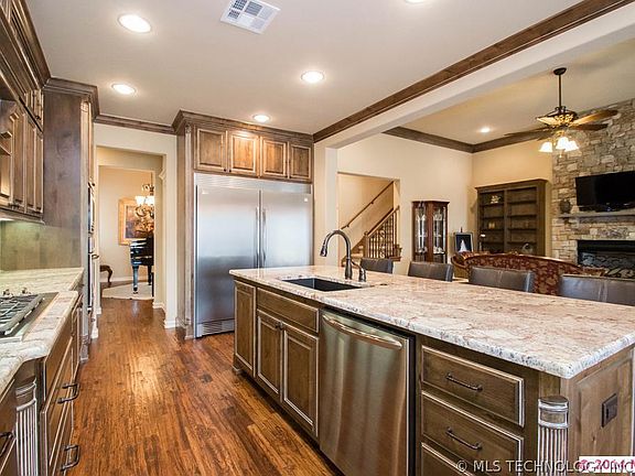 Luxurious home w/high end amenities. Soaring beamed ceilings, designer paint & glaze walls, granite kitchen with commercial refrigerator/freezer. Plantation shutters, 2 bedrooms down. Stunning in everyway!!!