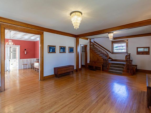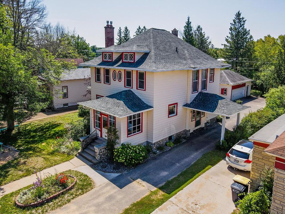 A Rhinelander Classic has hit the market! Known as The Donaldson/Heisman House, this beauty was constructed in 1906. Spacious rooms and classic, quality features abound in this beautiful home. The main level features a living room with gas fireplace, a dining room, a sun room, kitchen with a butler's pantry, a main staircase and a servant's staircase, two porches, a full bathroom (currently amidst remodeling), 10 foot ceilings and gleaming hardwood floors. The second floor boast 4 large bedrooms, one with a gas fireplace, and a large modern bathroom with a jetted tub and tiled shower. Stairwell access to an unfinished attic create more opportunities for usable space, while the basement has a large finished room, a full bathroom, laundry, and storage. A private back yard and 2 stall garage complete the package for this wonderful house in Rhinelander's desired Court House district. No worries about the King Street construction, the project will be done before you know it.