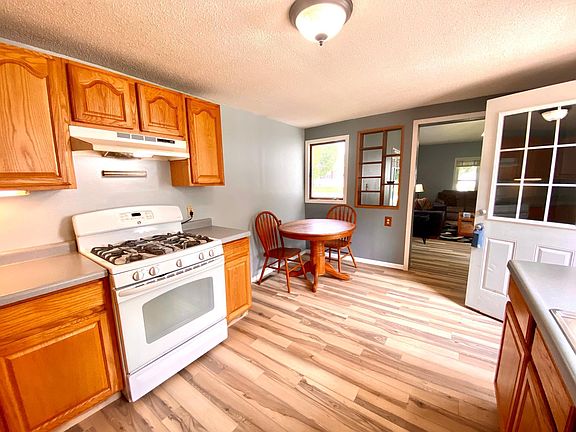 Cute and cozy recently updated 2 bedroom 2 bath home. Main floor laundry. Eat in kitchen. 18 x 24 insulated and heated shop/garage. Additional 10 x 18 storage shed. Deck. Concrete patio. Amazing location on edge of town with field to the back on almost 1/2 acre lot. Payments less than rent! Small town living at its best!!!