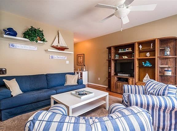 This first floor beautifully decorated, fully furnished 3 large bedrooms 2 full baths. Great rental history. Looks like it's never been rented. Open large living/dining/kitchen area. Granite counters. Laundry room with full size washer/dryer. Big deck to watch the Friday fireworks or just enjoy a drink. Out side shower. Privet two car garage with large storage and also another space outside for total of 3 cars parking. Short walk to beach, boards and restaurants. Just bring your suitcase. This is a must see.