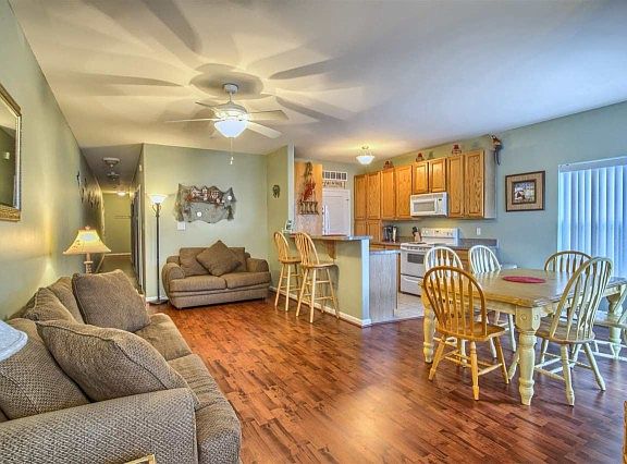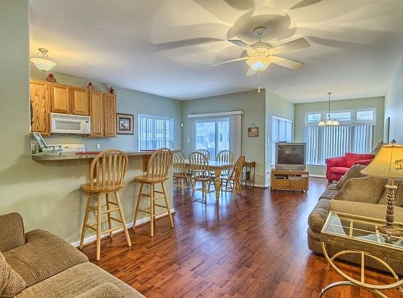 Stunning Wildwood Condominium! This is a well-maintained 3 bedroom, 2 full bath condo is located on first floor above garage. An open floor plan boasts gorgeous flooring that extends throughout the living room, dining room, and kitchen. Tons of windows allowing for summer sunlight and ocean breezes. Enjoy the amazing, private covered front deck perfect for relaxing and morning coffee. Laundry area with storage is conveniently located right off the kitchen. The master bedroom has full bath and both bedrooms are spacious and host superior closet space. Updated with modern flair and tastefully decorated making this a great place for family and friends to gather. Location is suitable for year-round occupancy, personal beach escape, or an excellent rental opportunity. Two car garage is in the front of the complex with driveway and parking pad. The storage room is located in the rear near the entrance to the condo and offers plenty of room for bikes and beach gear. This is a low maintenance building with fenced rear yard and landscaping.