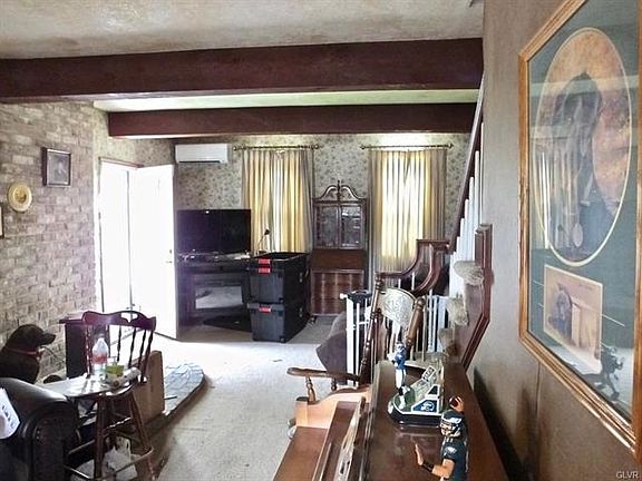 Unique half twin with great bones on a quiet corner in uptown Slatington. Open concept living area with pellet or wood stove hookup. Eat in kitchen with large bay window. First floor powder room and laundry. Large family room with hot tub and tons of windows offering natural light. Removable chair lift to second floor. Full bath upstairs with tub and separate handi-capable shower. 2nd floor main room with attic access could be used as den/office or 3rd bedroom. Sunken master bedroom has walk in closet. Asphalt fiberglass roof put on in 2015. Detached 2 car garage with attached bonus room currently set up as a home gym, could be man cave or workshop, or could be turned into an in-home business. Large stone patio and spacious fenced in yard ready for some much needed entertaining.
