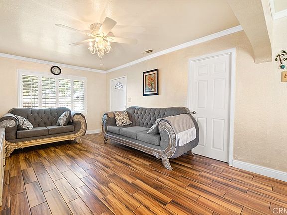 Buyers must see this beautiful remodeled home. The first floor has 3 bedrooms, 3 bathrooms, living room and family room with tile flooring throughout. The first floor also has two separate kitchens; one has Quartz countertops. The second floor is comprised of 2 master bedrooms (one has jacuzzi), 1 bedroom, a bathroom in the hallway, a family room and laminate flooring. Recessed lighting as well as crown molding throughout the house. Two car garage with access to the living room. The property is fenced with block and has two iron gates. The driveway has a capacity of approximately six cars. The backyard has a covered patio with a variety of fruit trees.