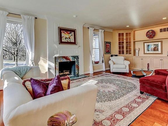 This special home has been loved by the current owners who raised their family here and impeccably renovated it. The bright entrance hall leads to the Living Room that is light filled, has a gas fireplace with a rare type granite mantle, crown moldings, and built-in display case. Palladian arched windows grace the formal Dining Room and complement the double-height crown molding & chair rails and the marble-top built-in server. The Butler's Pantry includes a wine refrigerator, a bar sink, glassware dishwasher, and granite-top serving counter. Sunlight pours into the kitchen's vaulted ceiling area from another palladian arched triple window. This Kitchen has it all ~ a granite-top island that seats 3, abundant wood cabinetry, beveled granite countertops, 6 gas cooktop burners, and stainless appliances ~ 2 ovens, large dishwasher, and latest style refrigerator. There is also a large Mud Room with closets, a walk-in pantry, access to the 3 car garage, and 1 of 2 first floor half baths. The open flow of the Kitchen/Eating Area/Family Room is the warm and inviting heartbeat of the home. The informal Eating Area contains a granite-top table (matches the counters) that comfortably seats 8. The Family Room has built-in book/display cases and a gas fireplace with an amazing rare granite mantle and matching leather finished granite sitting ledge. The Library is another example of fine wood craftsmanship and elegant design. The vaulted ceiling above the built-in desk has 2 skylights casting light into the room. A gas fireplace and several sets of exquisite bookcases complete the private office. The first floor is completed with glass French doors that bring you to the easily maintained Trex deck. The deck can accommodate large gatherings or private moments enjoying the lovely yard. The grounds have been carefully planted to have an array of flowers that change every month from March through October. You can view the great gardens from the 2nd level as well, which is accessed