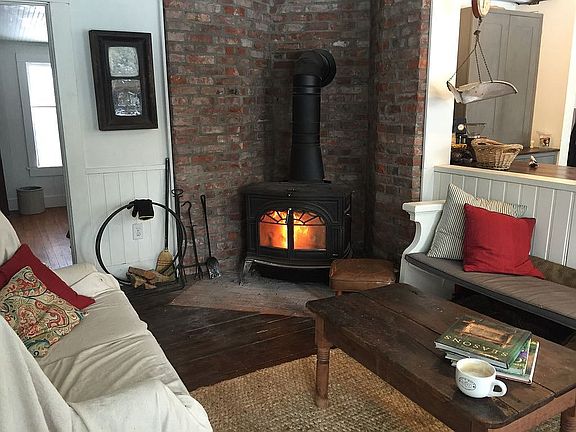 Imagine yourself in this charming 4 bedroom/2 bath modern-rustic farmhouse that sits on two bucolic acres in the cozy village of North Egremont, just minutes from Great Barrington. This 1838 house was recently updated with a new kitchen, roof, septic system, on-demand water heater, water softener (on hot water only), blown-in insulation, wood stove, and bathroom fixtures. Featuring a relaxing side porch, stone terrace, fire pit, fenced back yard with a babbling brook, fruit courtyard and a fenced-in summer garden, there are plenty of outdoor spaces to enjoy the refreshing Berkshire summers without leaving the property! A hot tub can easily be added to the property, since it has been pre-wired. The gourmet eat-in country kitchen has all the bells and whistles and features a Subzero fridge, French Lacanche range, apron-front fireclay sink, LG dishwasher and an antique marble-topped island. The dining room is spacious, and the cozy den is perfect for watching TV or playing the piano. Conveniently located off the back porch, the mudroom has a sink and LG front-load washer and dryer. The oversized bath downstairs has a stand-alone claw foot tub with shower ring. All the family bedrooms are upstairs - two large (one with queen bed, the other with two twins), and two medium-sized rooms (one fits a double bed, the other one a twin) - all with closets. The full bath upstairs is at the end of the hall. A cast iron wood stove and steam heat radiators, each of which can heat the whole house or can be used together, keeps the house toasty in the winters. The pure, ice cold water is natural and untreated - pumped from a deep well. There is reliable high-speed fiber internet, perfect for a home office. Our cell phone carrier here is AT&T. This historic homestead is in the village. The front of the house is set back about 20 feet from the road, with lots of space on the sides and in the back for running, playing and lounging. There is also an abundance of fruit trees and bushes in the front yard, as well as an antique barn in the back yard for your pets and livestock, perfect for chickens, ducks, or sheep. This place is absolutely magical in every season! Perfect for year-round living or as an AirBnB / VRBO rental.