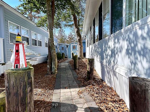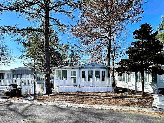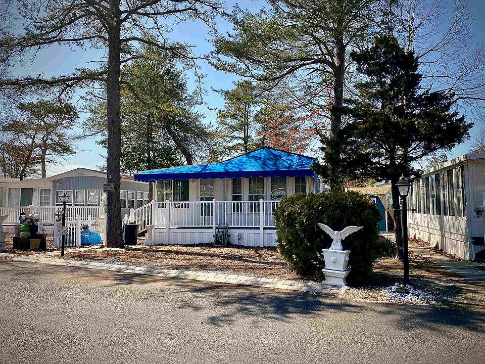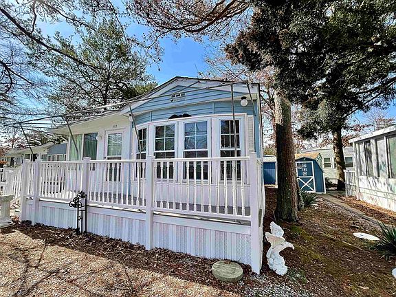 This 2 bedroom 1 bathroom mobile home includes off street parking for 2 cars, stone yard which requires little maintenance and a shed to store your tools, bikes and beach gear. The extra-large Florida room runs the entire length of the home and features lifetime roof panels that require minimal maintenance, wall to wall Berber carpet, 2 ceiling fans, 2 sofa beds and a dining table with benches. The living room has cathedral ceilings with a ceiling fan, a love seat and two recliners along with a breakfast table. The kitchen is neat and clean and has a very simple and functional flow. Both trailer and Florida Room are insulated and have a brand-new heat pump installed in August of 2022 which provide central air and heat which will help keep your home comfortable and efficient no matter the season. The duct work was upgraded at the same time the heat pump was installed. The water heater is 15 gallons and is about 9 years old. A new layer of 25-year shingles was added to the roof about 9 years ago. The awning was added about 14 years ago. Bayberry Cove is a gated resort community located just a few minutes from the Ocean City beaches that is open from April 1-November 1st and offers many amenities including swimming pool, lake, playground, tennis courts, basketball court, bocce ball, Pickle ball, Gaga ball, 2 bath houses and 2 dog parks. A boat yard is available for a fee. THIS is the place you've been searching for, simply call to schedule your appointment today!