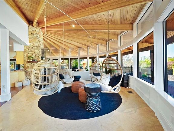 Indulge in tranquility with this fully furnished, approx 6000 sq. ft. custom-built retreat nestled on 46 acres, just minutes from I-85 and Hwy 52. Serenity envelops you upon arrival, with the soothing sounds of a waterfall and lush landscaping. Inside, discover an architectural masterpiece where a chef's kitchen flows into a dramatic great room, with solid wood beams and a stacked stone fireplace. A curved glass wall unveils panoramic views of the patio, saltwater pool, and rolling fields. The main level boasts a spacious primary suite, a fireside study, and a spa-like bathroom for ultimate relaxation. Upstairs, three bedrooms with recently renovated ensuite baths await. Descend to a wellness haven featuring a dry sauna and hot tub on the patio, alongside an additional room with an updated bath. This furnished and turnkey estate, minutes from Davidson County airport, is not just a home but a portal to endless possibilities. Prepare to be inspired.