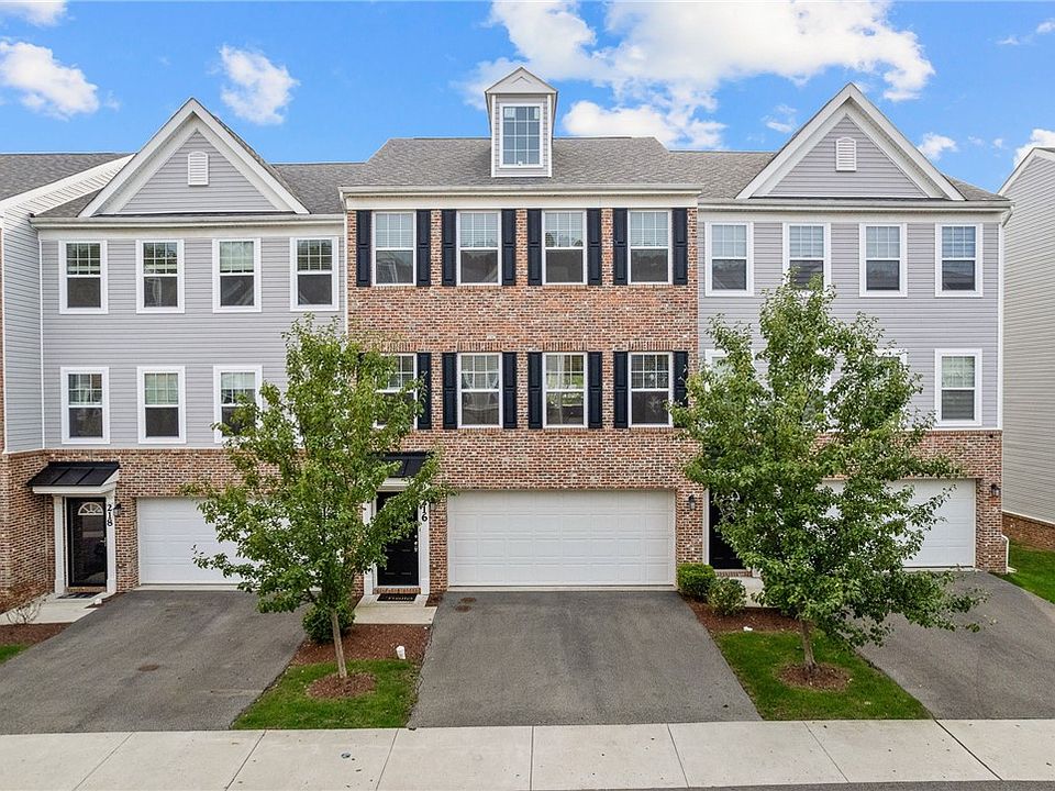 Welcome to this 2019-built full brick front townhome in the Park at Marshall, a premiere community offering both connection & convenience. Featuring 3 Bdrms/3 ba, incl a spacious owner’s suite w/ fully tiled bath, this home blends modern comfort w/ thoughtful design. The upgraded kitchen, finished w/ stainless steel appliances & a large center island, was enhanced at build & flows into the beautiful dining area & light-filled spacious living room. A main floor laundry rm adds everyday ease, while sliding doors lead to a private deck—ideal for morning coffee or entertaining. The finished lower-level flex space offers options for office, gym, or media room & walks out to rear patio. A 2-car garage provides storage & convenience. Community amenities incl pool, clubhouse & fitness center, w/ HOA covering roof, siding, landscape & road snow removal for low-maintenance living. All this just minutes to Rt 19, I-79, Cranberry shops & North Allegheny Schools. Make this vibrant lifestyle yours!