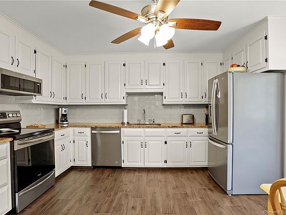 Lovely, Bright & Cheerful Spacious 3 Bedroom Aspetuck Condo. This Deerfield Unit Has a Sunny Updated Eat-In Kitchen With New Stainless Steel Appliances (2019) and Loads Of Cabinet Space. Large Dining Room Opens to Living Room With Fireplace. Great Space For Entertaining & Holiday Get Togethers! SunRoom off the Back Of The Unit With Parquet Flooring and Exit to Small Deck. Upstairs has 3 Bedrooms Including The Primary Suite with Full Bath, Closet Plus A Walk-In Closet. Full Basement With Walk-Out and High Ceiling Is Great For Storage or Possible Finishing. Main Level Laundry Room and Garage With Only 2 Steps Into Your Home. Cul de Sac location in One Of The Most Sought After Complexes. Make Your Appointment and See It Today!