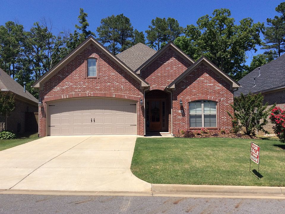 Brick house with fireplace, sprinkler system, security system, granite countertops, hardwood, tile and carpet