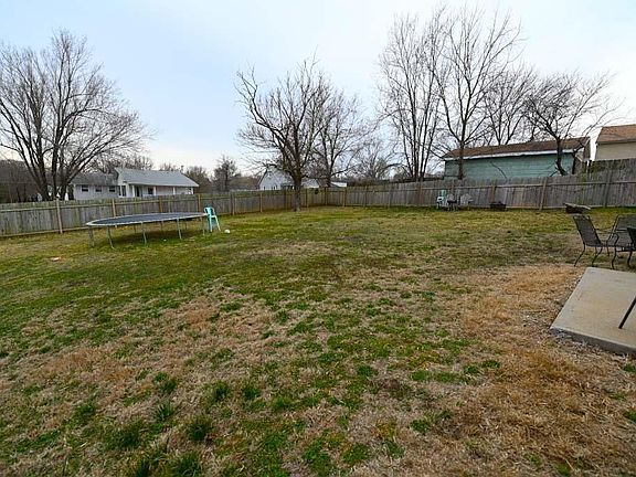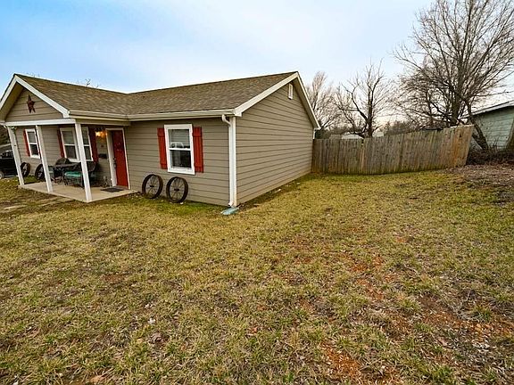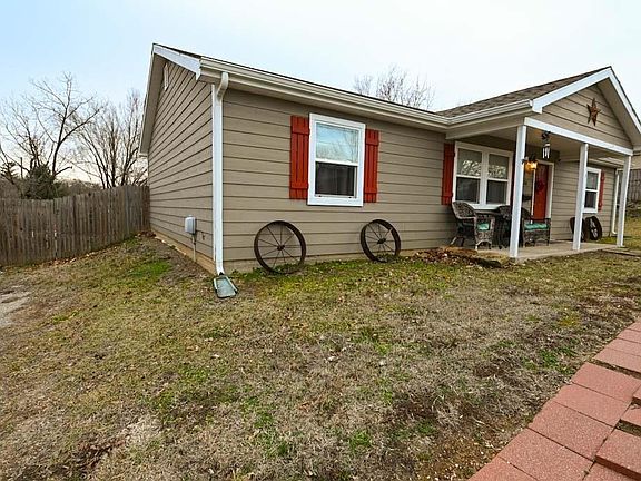 A newer home built in 2017 is for sale near the swimming pool in El Dorado Springs. The home consists of 3 bed and 2 baths. The home has an open floor plan of 1144 sqft, carpeted living room and bedrooms and tile kitchen and bathrooms. The home has a large, fenced backyard. Taxes on the home were $885.48 in 2023.