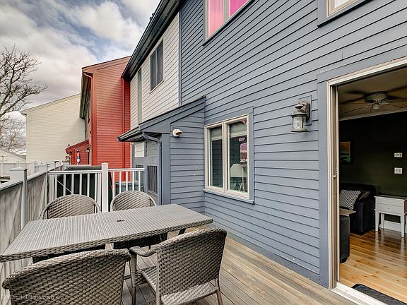 Live in the Heart of Newport's Iconic Brick Market Place! Welcome to this beautifully furnished two bedroom, two bathroom condominium offering 1,181 square feet of comfortable, coastal living. Perfectly situated among the charming shops, cafes, and restaurants of Brick Market Place, this multi-level home places you right in the center of everything Newport has to offer. Step inside from the marketplace level entrance and head up to the bright and spacious main floor. The open kitchen features a generous center island with seating, plenty of counter space, and room to dine, ideal for everyday living or entertaining. The living room is warm and inviting, flowing seamlessly onto a western-facing outdoor deck where you can relax and take in Newport's golden sunsets. Upstairs, you'll find two large bedrooms, each furnished with queen sized beds and ample closet space. The grand primary bathroom offers a luxurious retreat with a jetted soaking tub and separate shower. The second full bath features a combined tub and shower, perfect for guests or roommates. The condominium includes two parking spaces (one reserved, one open.) This property is furnished for a turnkey experience. Enjoy the best of Newport living, steps from the waterfront, boutiques, dining, and the vibrant charm of the City by the Sea. You will absolutely love calling this place home!