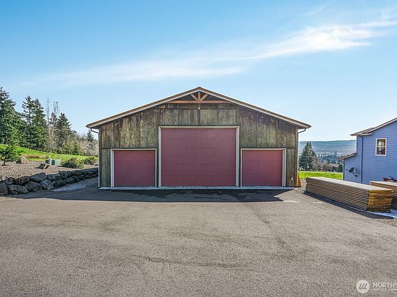 Amazing Opportunity! Home on Nearly 2 Acres w/ River & Mountain Views + Dream Shop on 1.87 acres w/ breathtaking views! A 40x60 cedar-sided shop w/ 4 bays, RV-height door, office space, storage, loft, room for up to 12 cars—perfect for auto enthusiasts, business owners, or hobbyists. Open-concept w/ LV flooring in main space. Living room w/ electric fireplace. Gourmet kitchen w/ quartz countertops, island, walk-in pantry, SS appliances & eating nook. Dining room & half bath. Upstairs primary w/ 2 walk-in closets, bath w/ soaking tub, walk-in shower. One more bedroom, bonus room, full bath & laundry. 2 decks & Koi pond. Ride rec vehicles from home to town for great dining or head to nearby trails. 3 minutes to I-5 & 35 minutes to PDX.