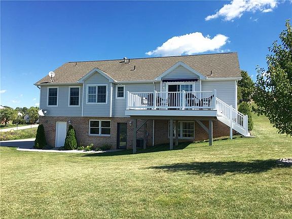 216 Grandma's Lane is a spectacular home in a great neighborhood! The property sits 10 minutes from I-70/76 at New Stanton, 30 minutes from Monroeville, and 5 minutes from major shopping areas. This nearly new home is meticulously maintained and boasts many upgrades throughout such as hard-coat plastering, architectural designs, cathedral ceilings, down lighting, stainless steel appliances, solid cherry cabinets and a tray ceiling in the Owner's Suite. You will enjoy one-floor living complete with a laundry room on the main floor. The open floor plan is ideal for entertaining and cooking to be done simultaneously. You can add bar stools to the kitchen island and converse while watching the game and/or preparing Thanksgiving Dinner. From the Dining Room, you walk out to your spacious 16x16 composite elevated deck overlooking the backyard! The covered front porch provides another outdoor space to relax and unwind. The concrete drive leads to an oversized extra-wide 24x25 garage. In the backyard, a 10x16 shed is included in the sale and is like new. It has the capacity to fit a riding lawnmower and other tools with ease. The lower level features a giant 19x24 Family Room and full bath that leads out to the backyard. For more information regarding this property or any other listing, call Dan Rusbosin.