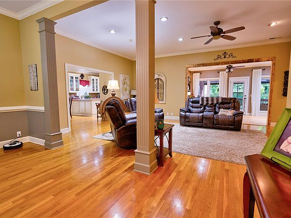 Nestled at the end of a quiet cul-de-sac in the beautiful Harrogate subdivision situated on approximately a 1/2 acre is this stunning 4-bedroom, 3-bathroom home located in Powdersville school district. This well-kept, all brick traditional home has everything you could ask for including a heated inground salt-water pool with a pool house featuring a mini kitchen with counter space, a sink, fridge, and its own FULL bathroom. The inviting curb appeal welcomes you to this home with a meticulously manicured yard. Inside you will find soaring ceilings with hardwood floors throughout and an open concept living/kitchen/dining area. The kitchen is a DREAM with a beautiful backsplash, under cabinet lighting, and updated features such as all stainless-steel appliances that CONVEY with this home. Off the master bathroom walk-in-closet you have your laundry room with shelving and washer and dryer also REMAIN with the home. The master bedroom features a trey ceiling and a massive walk-in closet. You will LOVE the master bathroom double vanity, standup shower and large soaking tub with separate water closet with newly added Bluetooth connectivity. The guest bedrooms are all spacious each with ample size closets and share a centrally located bathroom. The living room with an impressive gas log fireplace. This home also features an air purifier throughout. Step out back from the living area to the deck to find an outdoor wet bar for entertaining your guests. The fenced in backyard with your oval shaped heated inground pool will be your favorite vacation spot! You will definitely be the talk of the neighborhood with your new oasis!
