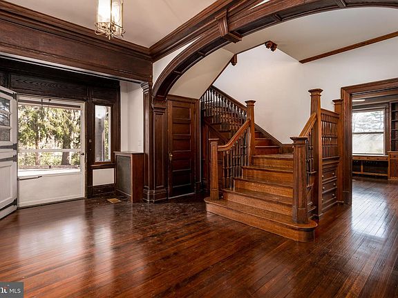 Set on a generous three-quarter acre lot, this restored and expanded circa 1895 arts and crafts-style manor home, ~Pamona Manor,~ offers classic charm and every modern comfort. Spacious rooms and elegant finishes meet historic details and period charm, all thoughtfully renovated for organized, easy living. The driveway is enormous and generous, with space enough to park 14 cars, lined with a stone wall and beautiful gardens surrounding. Huge formal center hall leads you into this amazing space. There are large covered porches on either end of the center hall for plenty of outdoor entertaining. Thirteen-foot ceilings, stunning chestnut woodwork, and beautiful hardwood floors with old-world style throughout the home. The spacious formal living room boasts a brick fireplace with gas log insert. Handsome wainscoting adorns the formal dining room flanked by pocket doors, with an additional brick fireplace with woodstove insert and has plenty of space for entertaining. The dining room adjoins the kitchen through an original butler~s pantry. The kitchen boasts a huge walk-in pantry, and a large island which comfortably seats eight. It has a fireplace behind the stove, which was uncovered during renovation. It leads to a very large laundry/utility room, with built-in closet, sink, counter, and plenty of cabinets. A large library completes the first floor space, with a window seat, two built-in desks, and wall-to wall built-in cabinets and bookshelves. The grounds include a huge 25x50 garden already with beds in place for endless possibilities.Upstairs, the spacious master bedroom has another beautiful brick fireplace, two closets, wainscoting, and leads to a very large bathroom, updated with a marble counter/cabinet combo for extra storage. The large center hall on the second floor was used as a children~s library for the current owners, with an adjoining sitting room with walk-in closet and built-in cabinets and drawers. Five additional bedrooms are on this floor and two additional full baths, with a back stairway to compliment the large, wide and spacious center hall stairwayThe third floor offers one more large bedroom and full bath. Two enormous rooms are on the third floor level, which had been used as children~s playroom and home office. This space is ideal for a person who wants to work from home or needs a large at-home business space. It includes a walk-in attic, as well as a pull-down fourth level attic, and has separate heating and air conditioning zones.The beautifully landscaped outdoor living space is ideally situated, just a short walk to the Wallingford train station to reach downtown Philadelphia in thirty minutes, or drive to Wilmington in that same half hour. The Philadelphia International Airport is just a fifteen minute drive away, and it is less than a mile to recently revitalized downtown Media.