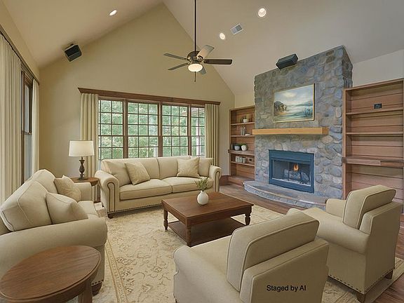 Framed by sweeping seasonal mountain views, this timeless Craftsman-style home blends luxury, functionality, and privacy. Paved roads, underground utilities, and beautiful, secluded location. Inside features an open, light-filled layout with walls of windows. Spectacular great room with soaring cathedral ceilings, rich wood finishes, custom shelving, and a striking two-sided stone fireplace. An adjacent office with built-in shelves, fireplace, and private porch provides a quiet workspace. Three well-crafted bedrooms and three full bathrooms ensure ample privacy and comfort. Large master suite with its own stone fireplace is gorgeous, one of the many detailed architectural features. An opulent, spa-like bath with direct access to the laundry room, which is also conveniently accessible through the hallway off the kitchen and garage entrance. A whole house generator, central vacuum system, and fiber optic internet reinforce the home's refined practicality. Extend your living space to the outdoors with three porches, offering the perfect retreat to enjoy stunning views. Expansive basement with fully wired media room and abundant space for gaming or entertaining. This area is also stubbed and wired for a kitchen, allowing for easy future personalization. Indoor workshop--perfect for projects or repairs--adds practical utility. Two-car garage with lots of space in attic for more storage or finished living space. New HVAC system on terrace level. Top a few of the hardwood trees for a year-round mountain view. This extraordinary home is truly the pinnacle of mountain refinement
