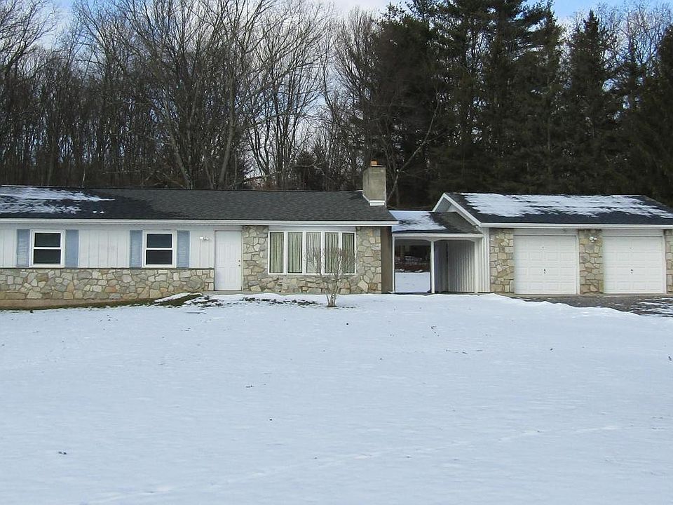 3 BR, 2 bath single level gem on over 1 acre lot. Home also has a bonus sun room off master suite to rear patio. Laminate floors, wood burning stone front FP, breezeway and 2 stall detached garage. Lovely setting. Overlooks private pond!!